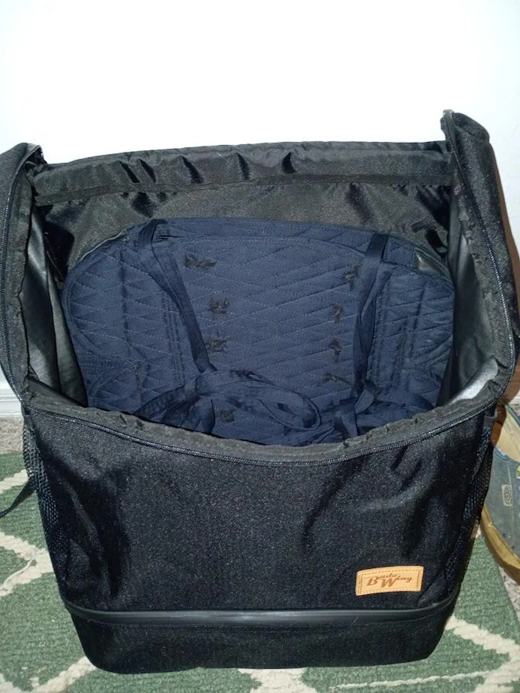 Its elegant design lets you store your Bogu in the main compartment, your Dogi and Hakama flat and folded in the bottom compartment, and provides many extra internal and external pockets for your accessories.